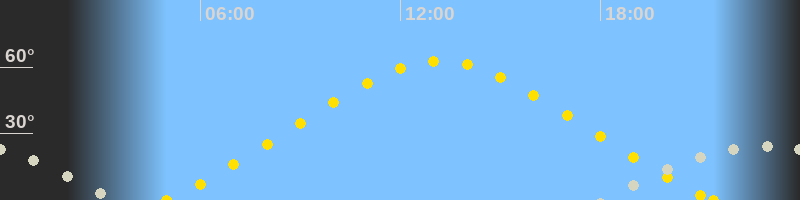 | Höchster Sonnenstand (Kulmination) | 13:11 Uhr (h = 62.7°) |