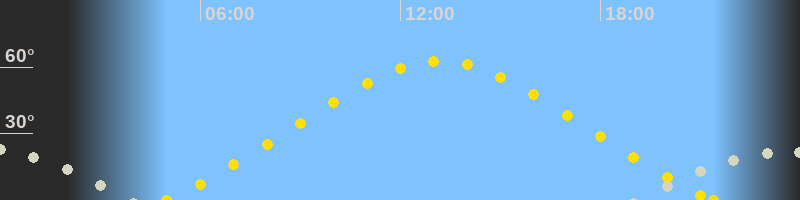 | Höchster Sonnenstand (Kulmination) | 13:11 Uhr (h = 62.7°) |