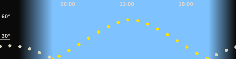 | Höchster Sonnenstand (Kulmination) | 13:16 Uhr (h = 59.9°) |