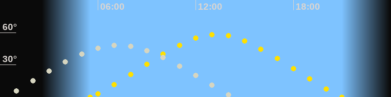 | Höchster Sonnenstand (Kulmination) | 13:16 Uhr (h = 58.2°) |