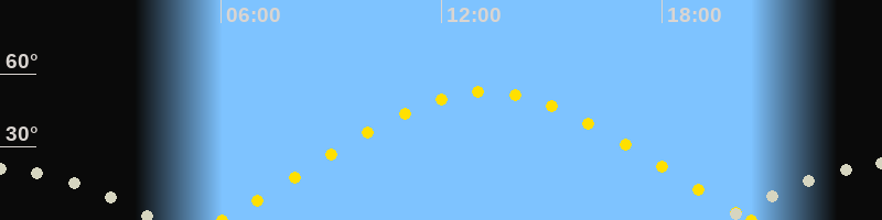 | Sonnenaufgang | 06:02 Uhr im Osten (αAz = 67.6°) |