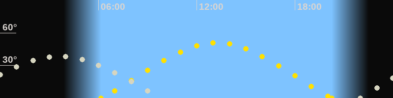 | Höchster Sonnenstand (Kulmination) | 13:13 Uhr (h = 51°) |