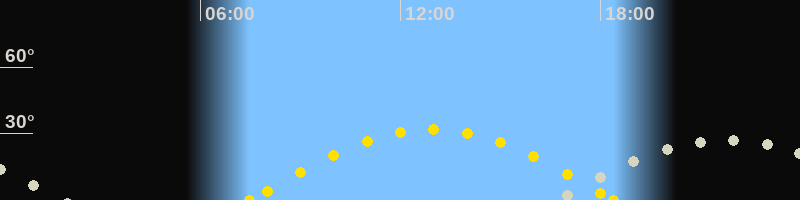 | Sonnenuntergang | 18:23 Uhr im Westen (αAz = 258.8°) |