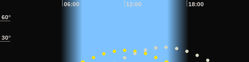 | Höchster Sonnenstand (Kulmination) | 12:00 Uhr (h = 17°) |