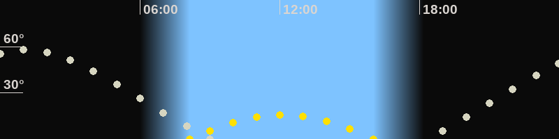 | Höchster Sonnenstand (Kulmination) | 12:05 Uhr (h = 16°) |