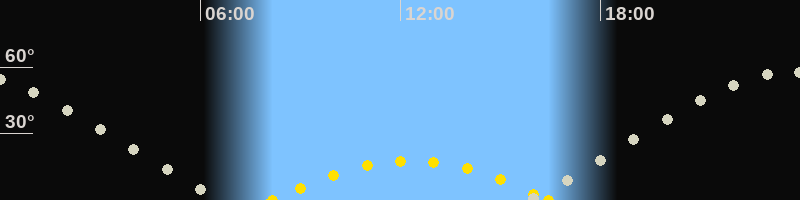 | Höchster Sonnenstand (Kulmination) | 12:18 Uhr (h = 17.6°) |