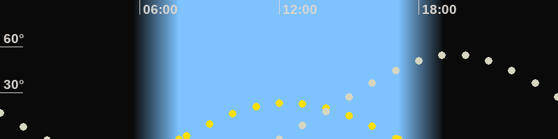 | Höchster Sonnenstand (Kulmination) | 12:24 Uhr (h = 23.6°) |