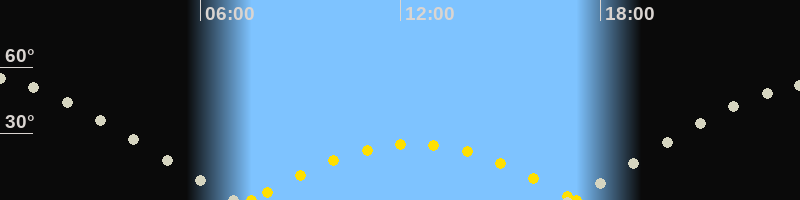 | Höchster Sonnenstand (Kulmination) | 12:24 Uhr (h = 25.2°) |