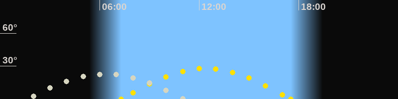 | Höchster Stand (Kulmination) | 06:22 Uhr (h=22.9°) |