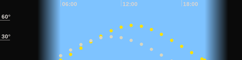 | Sonnenaufgang | 06:00 Uhr im Osten (αAz = 68.9°) |