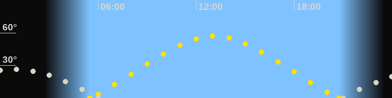 | Sonnenaufgang | 05:30 Uhr im Nordosten (αAz = 60.4°) |