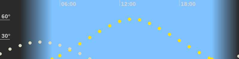 | Höchster Sonnenstand (Kulmination) | 13:16 Uhr (h = 61.1°) |