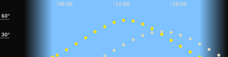 | Höchster Sonnenstand (Kulmination) | 13:16 Uhr (h = 58.3°) |