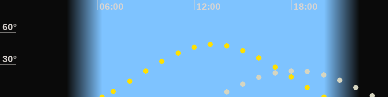 | Sonnenaufgang | 06:18 Uhr im Osten (αAz = 73.6°) |