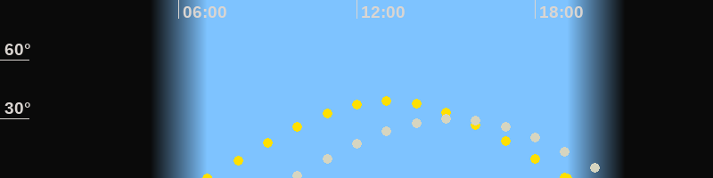 | Höchster Stand (Kulmination) | 15:14 Uhr (h=30.4°) |