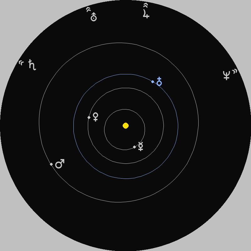 | f Merkur g Venus l Erde h Mars j Jupiter S Saturn A Uranus G Neptun |
