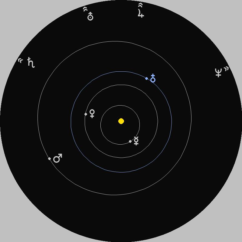 | f Merkur g Venus l Erde h Mars j Jupiter S Saturn A Uranus G Neptun |