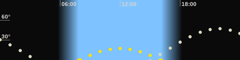 | Höchster Sonnenstand (Kulmination) | 11:59 Uhr (h = 17.5°) |