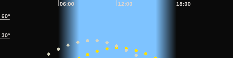 | Höchster Stand (Kulmination) | 09:25 Uhr (h=27.5°) |