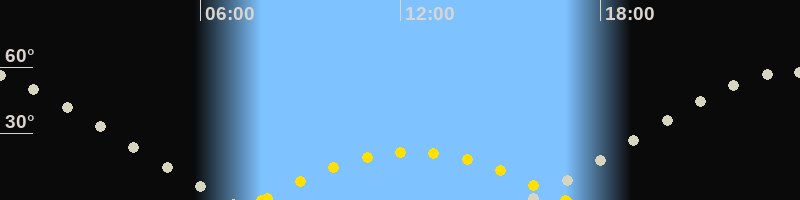 | Höchster Sonnenstand (Kulmination) | 12:23 Uhr (h = 21.8°) |