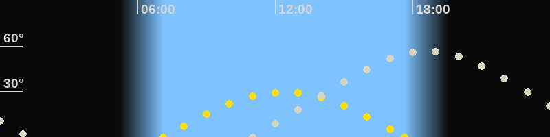| Höchster Sonnenstand (Kulmination) | 12:23 Uhr (h = 29.7°) |