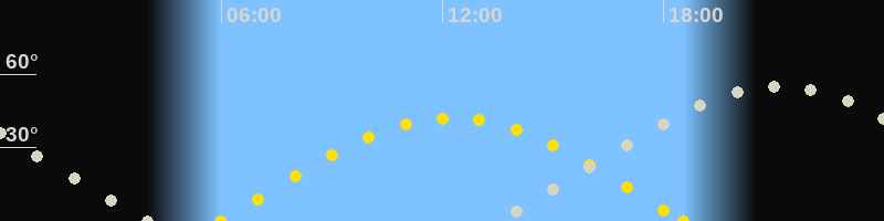 Höchster Sonnenstand (Kulmination)12:15 Uhr (h = 42.1°)