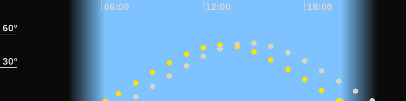 | Sonnenaufgang | 06:13 Uhr im Osten (αAz = 72.4°) |