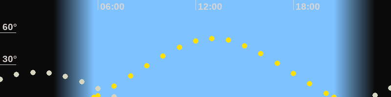 | Sonnenaufgang | 05:45 Uhr im Nordosten (αAz = 64.8°) |