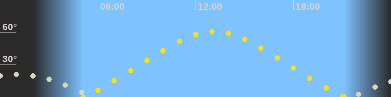 | Höchster Sonnenstand (Kulmination) | 13:07 Uhr (h = 61°) |