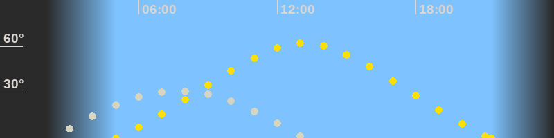 | Höchster Sonnenstand (Kulmination) | 13:09 Uhr (h = 62°) |