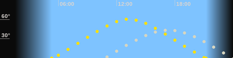 | Höchster Sonnenstand (Kulmination) | 13:16 Uhr (h = 60.3°) |