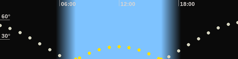 | Höchster Sonnenstand (Kulmination) | 11:56 Uhr (h = 19°) |