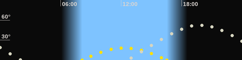 | Höchster Sonnenstand (Kulmination) | 12:19 Uhr (h = 18.2°) |