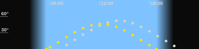 | Sonnenaufgang | 05:34 Uhr im Osten (αAz = 78.4°) |