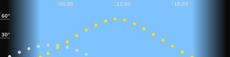 | Höchster Sonnenstand (Kulmination) | 12:07 Uhr (h = 60.1°) |
