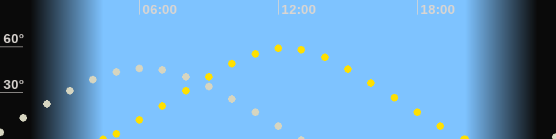 | Höchster Sonnenstand (Kulmination) | 12:16 Uhr (h = 59°) |