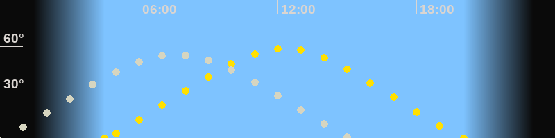 | Höchster Sonnenstand (Kulmination) | 12:16 Uhr (h = 58.6°) |