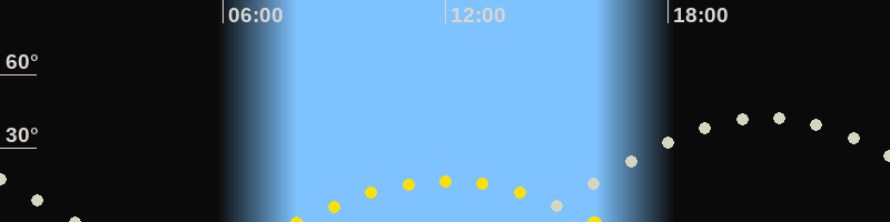 Höchster Sonnenstand (Kulmination)12:01 Uhr (h = 16.7°)