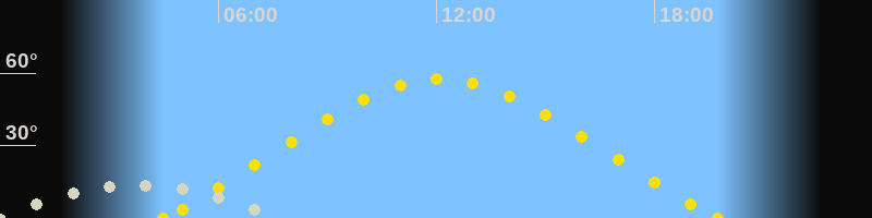 | Höchster Sonnenstand (Kulmination) | 12:06 Uhr (h = 57.5°) |