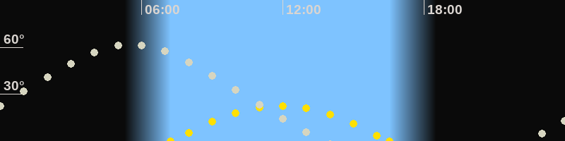 Höchster Stand (Kulmination)05:33 Uhr (h=61.9°)