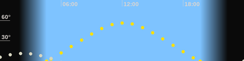| Höchster Sonnenstand (Kulmination) | 12:06 Uhr (h = 56.5°) |