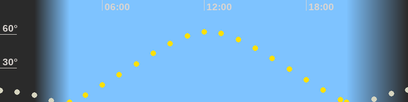 | Höchster Sonnenstand (Kulmination) | 12:14 Uhr (h = 62.2°) |