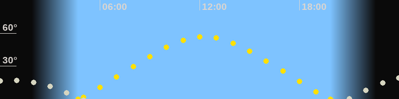 | Sonnenaufgang | 04:40 Uhr im Nordosten (αAz = 60.4°) |