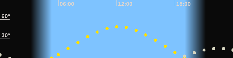 | Höchster Sonnenstand (Kulmination) | 12:11 Uhr (h = 48.8°) |