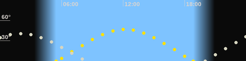 | Höchster Sonnenstand (Kulmination) | 12:09 Uhr (h = 47°) |