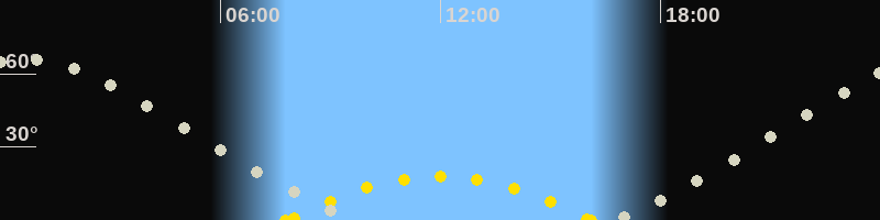 | Höchster Sonnenstand (Kulmination) | 11:58 Uhr (h = 17.9°) |