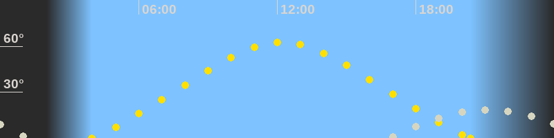 | Höchster Sonnenstand (Kulmination) | 12:11 Uhr (h = 62.7°) |