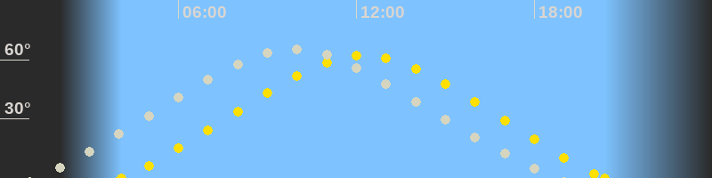 | Höchster Sonnenstand (Kulmination) | 12:14 Uhr (h = 62.1°) |
