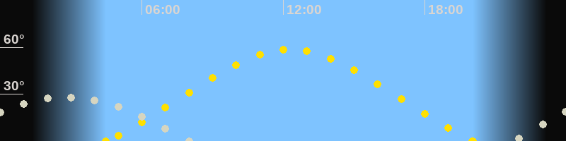 | Höchster Sonnenstand (Kulmination) | 12:16 Uhr (h = 58.9°) |