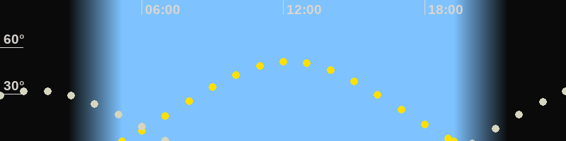 | Sonnenaufgang | 05:09 Uhr im Osten (αAz = 70.4°) |